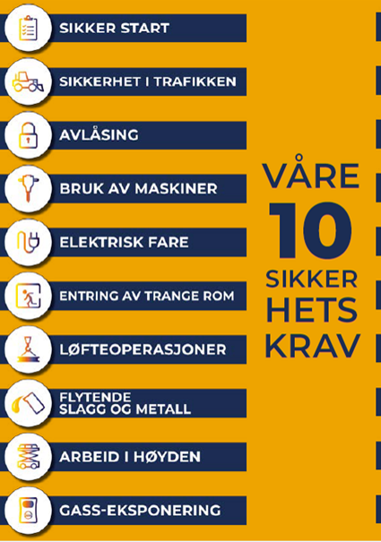 Vårt slagord er ‘Sikkerhet først, for alle, alltid’, og vår høyeste prioritet er helse og sikkerhet for alle som arbeider for oss. Vi vil at alle skal forlate arbeidsplassen med like god helse og like godt humør som da de kom. Sikkerhet er ferskvare, og vi må hele tiden holde fokuset oppe.